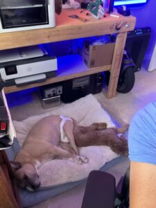 Elsa’s one dog bed has a small hole in the top of it from either her or Mia digging at the bed with their claws. I bought them a new bed over the weekend. It looks/feels like an oversized marshmallow covered in faux fur. After a brief WTF is this when they first saw the bed they quickly realized how soft and comfortable it is which made me happy.